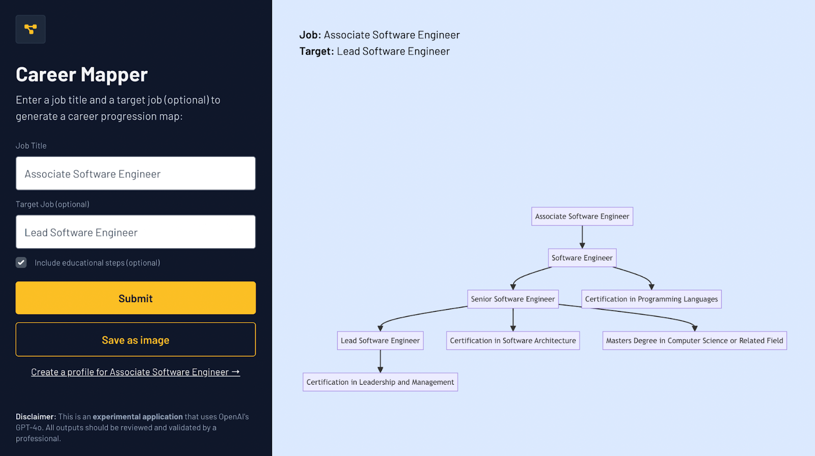 4. Save the Map: You have the option to save the generated career map as an image for future reference or share it with others.